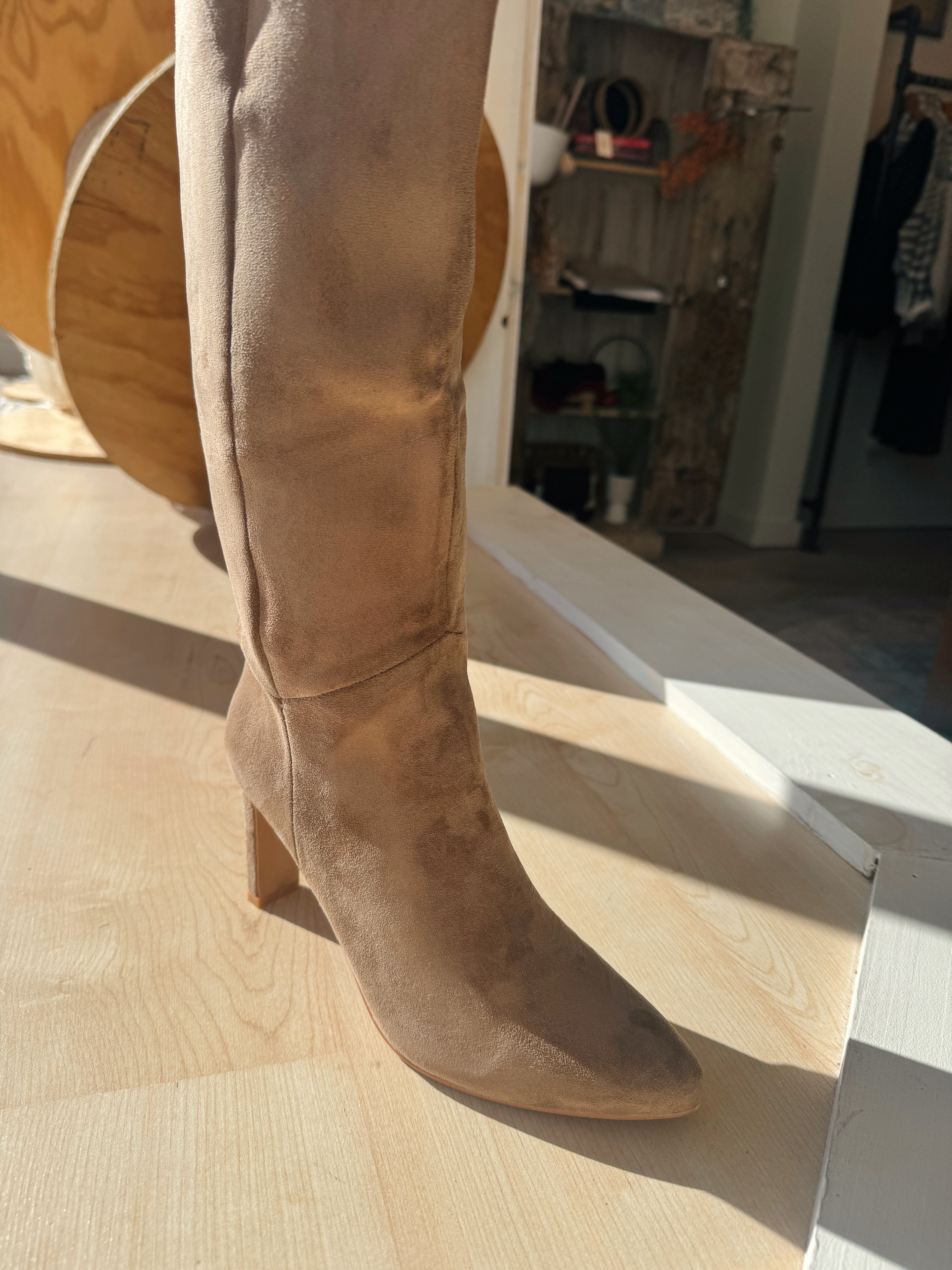Looking for a knee-high boot that does it all? The Adriana is your new best friend. Crafted from super soft taupe suede, this boot is the perfect neutral shade that literally goes with everything in your closet.