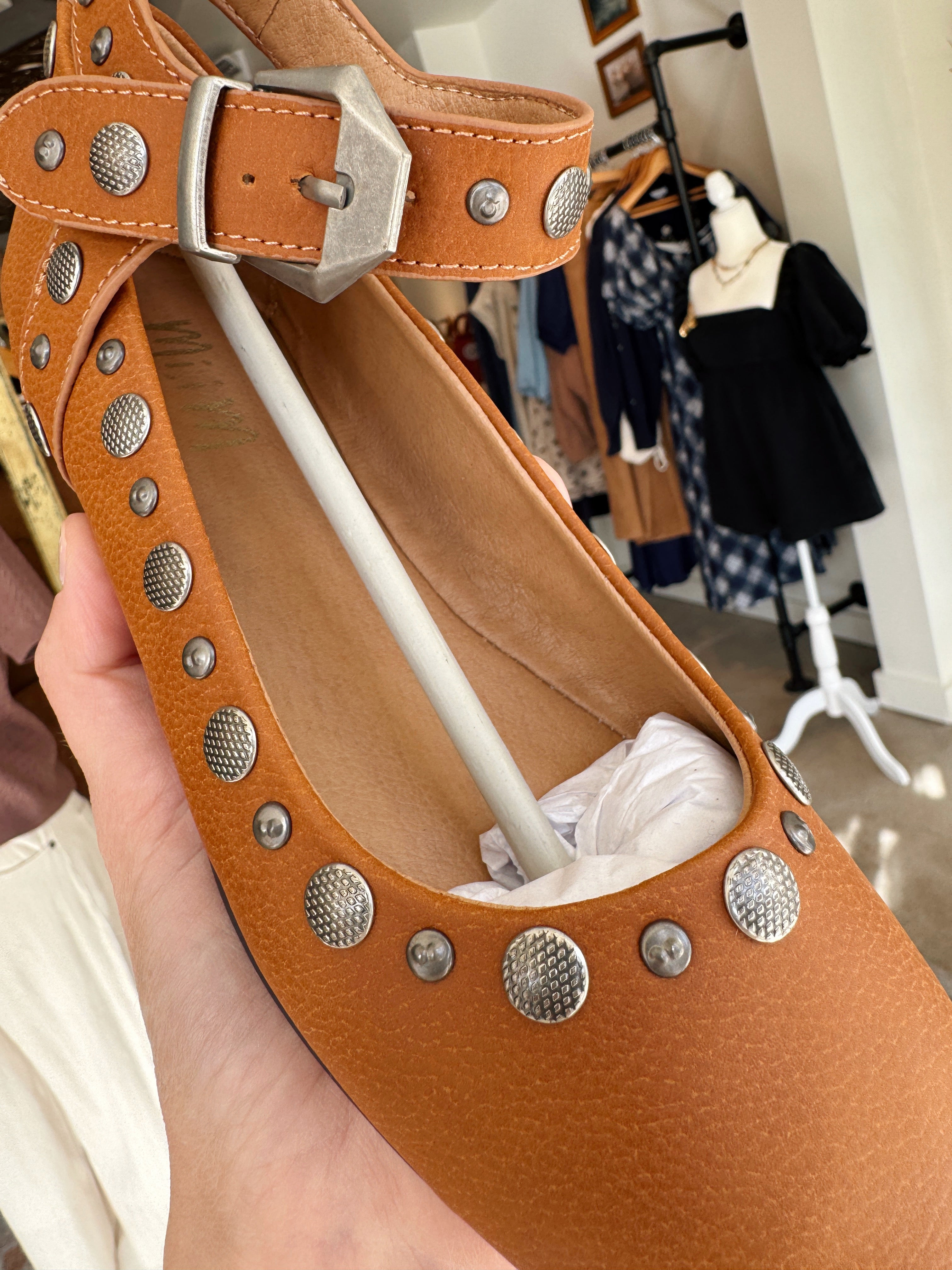 Office Chic: Pair the flats with tailored, cropped trousers and a crisp blazer to let the unique studded ankle strap details shine.