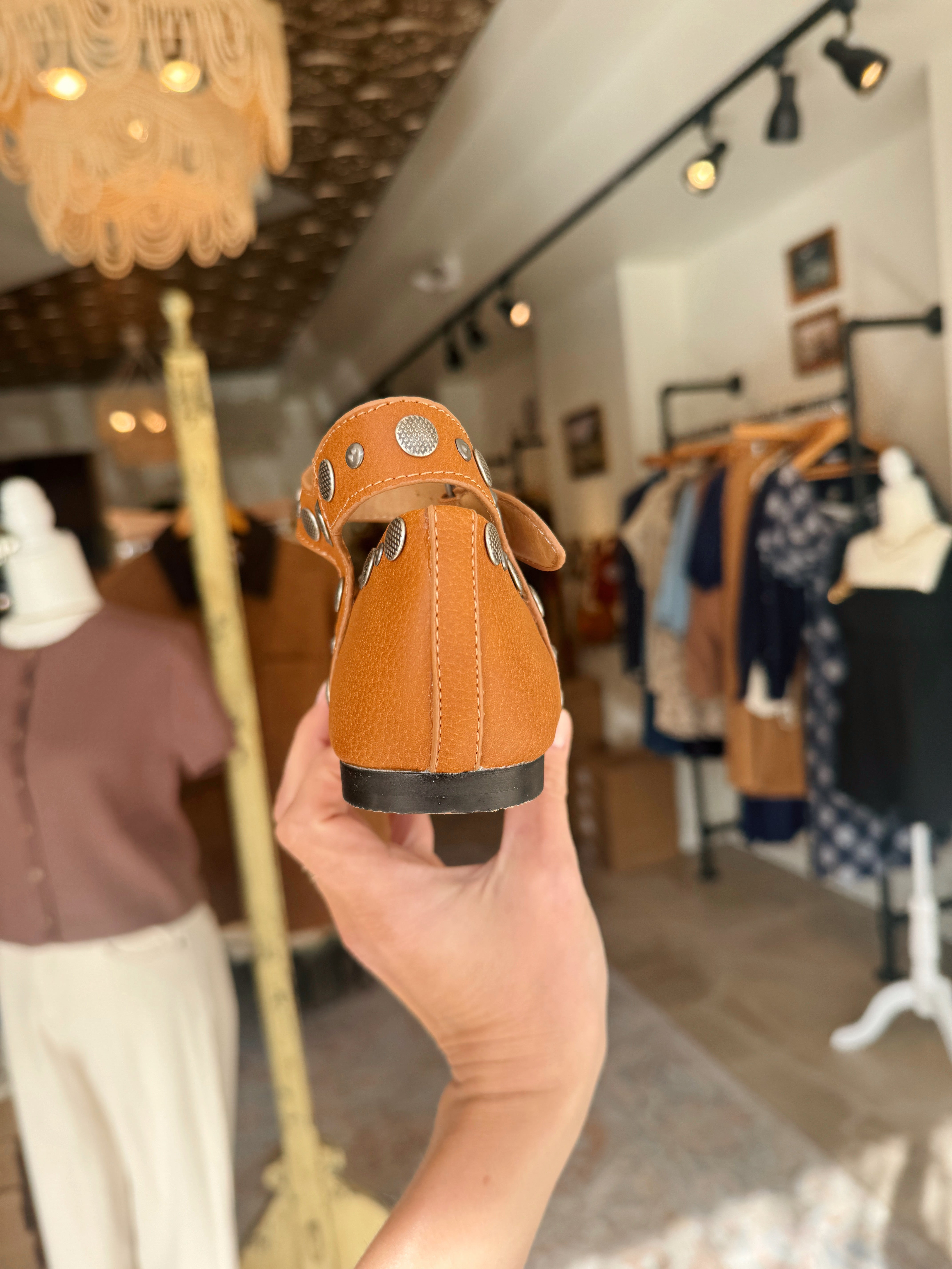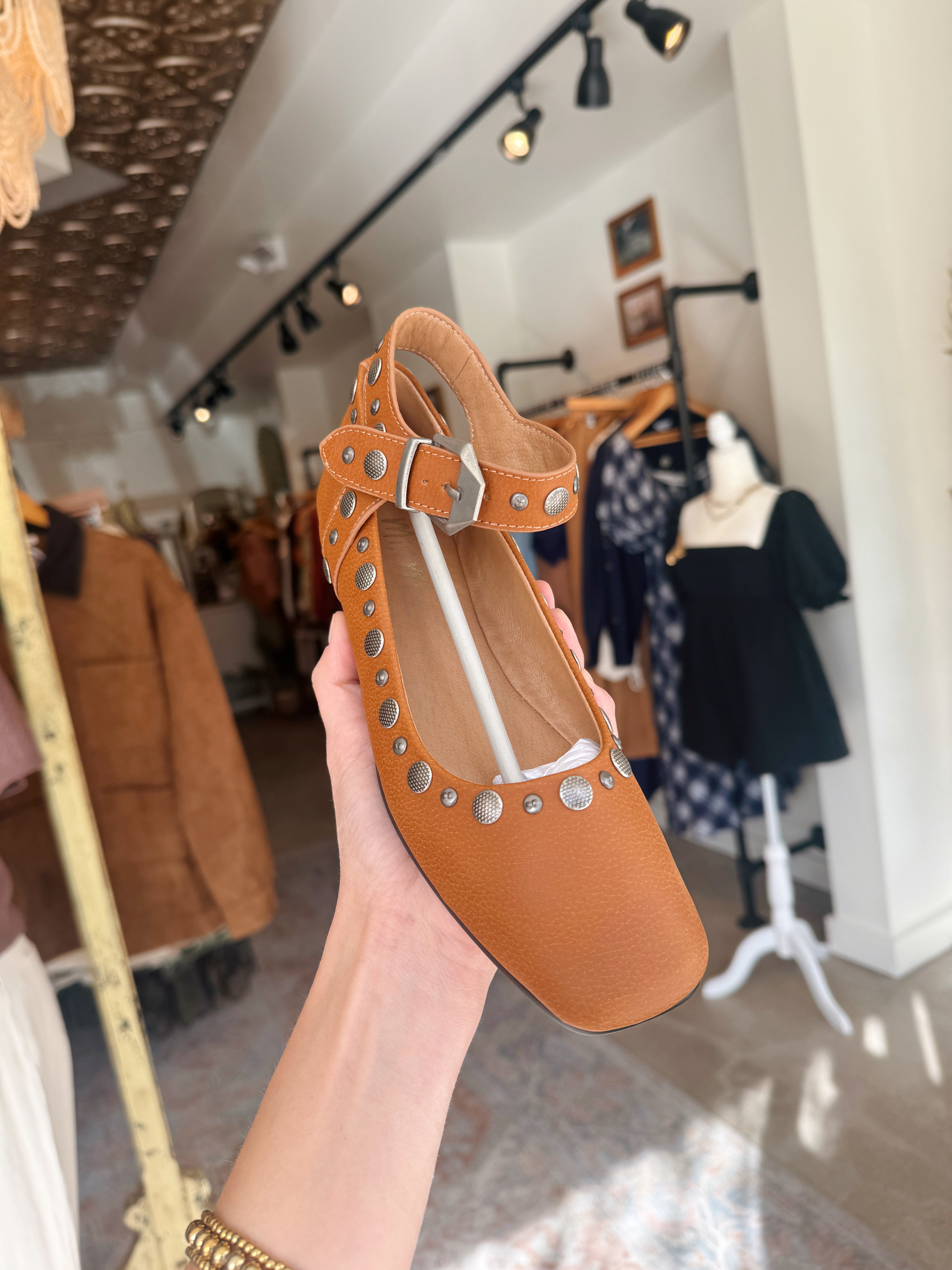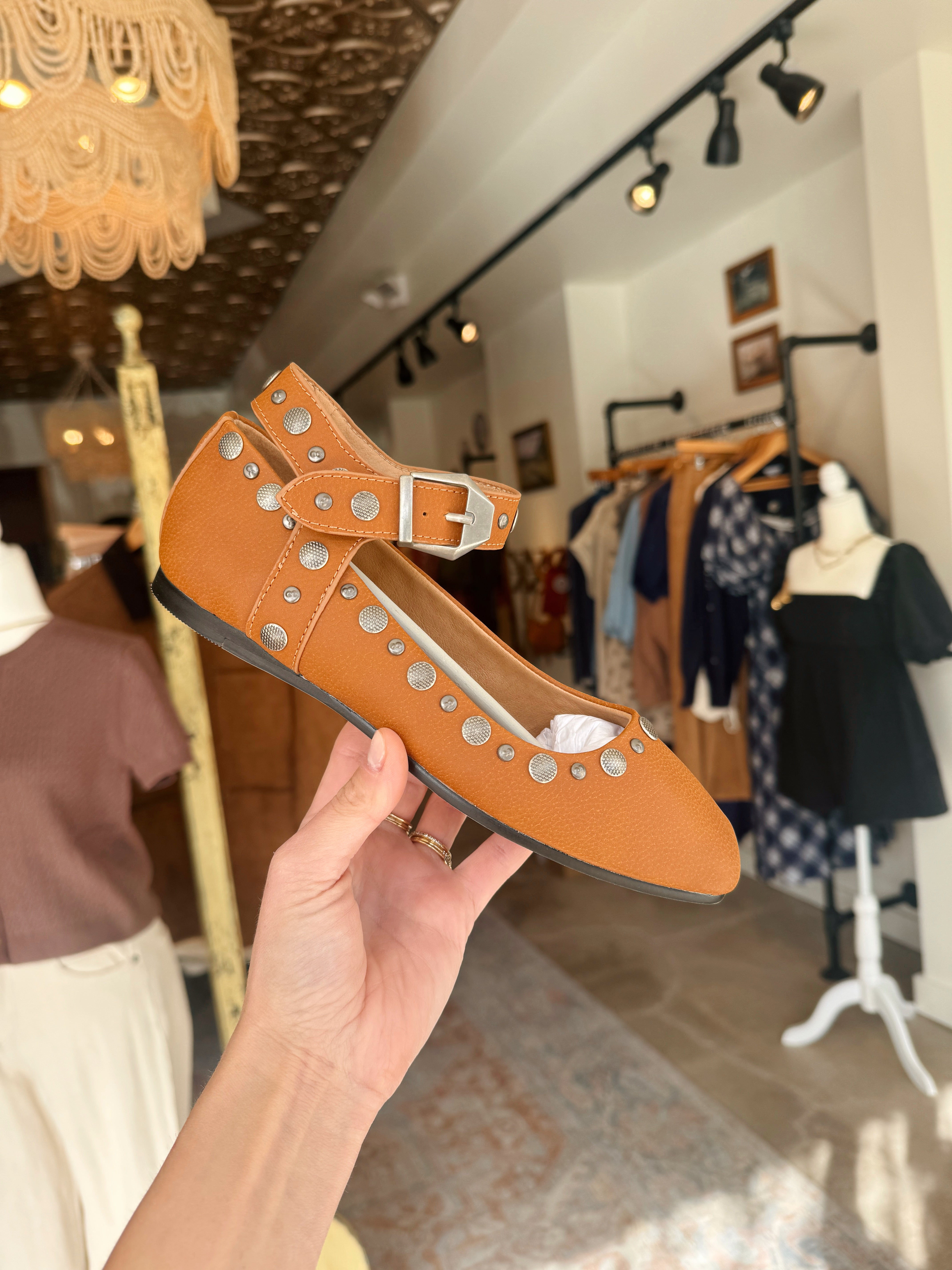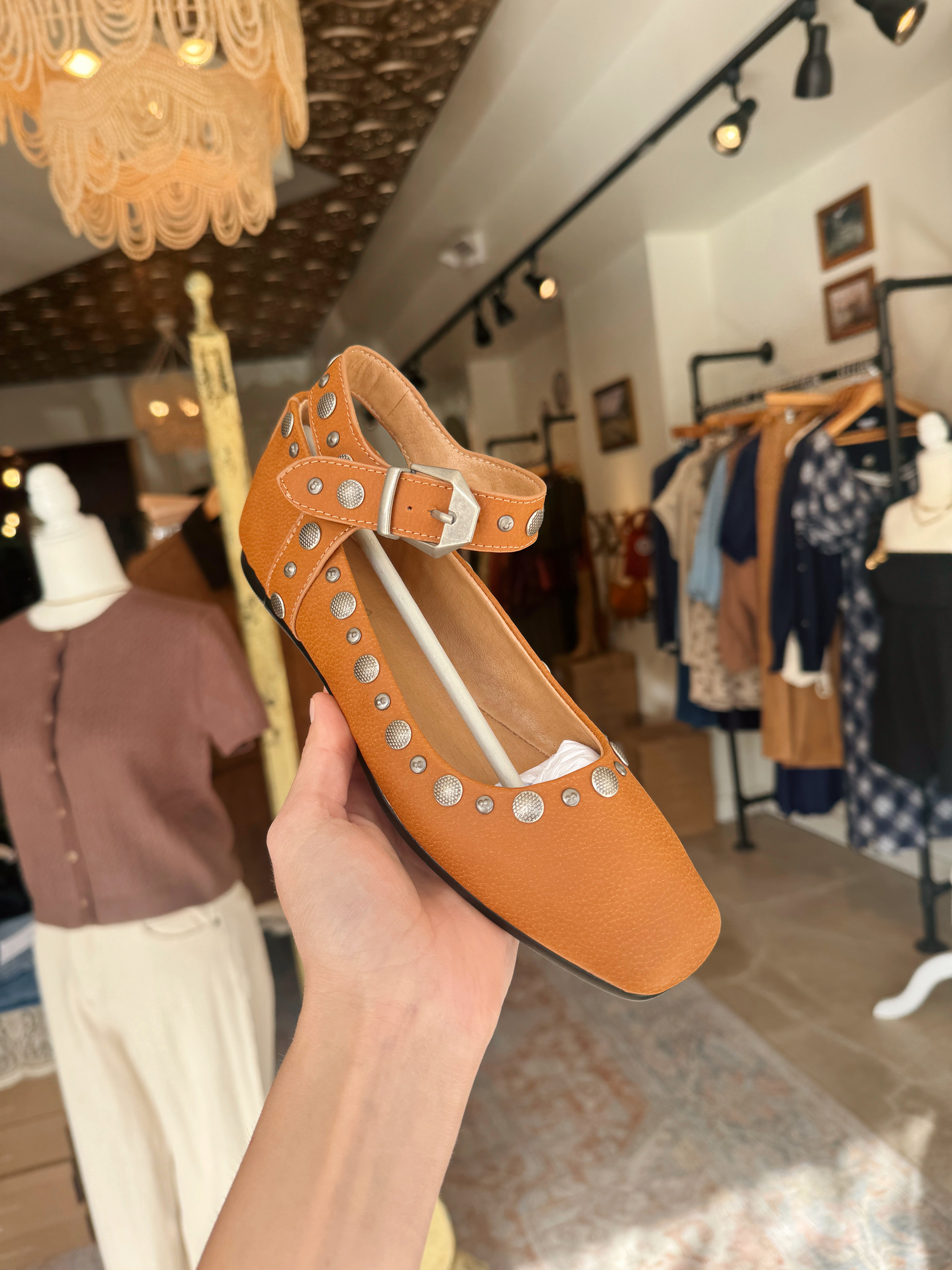 Elevate your everyday with the Mystic Studded Ankle Strap Ballerina Flats—where contemporary design meets all-day comfort.