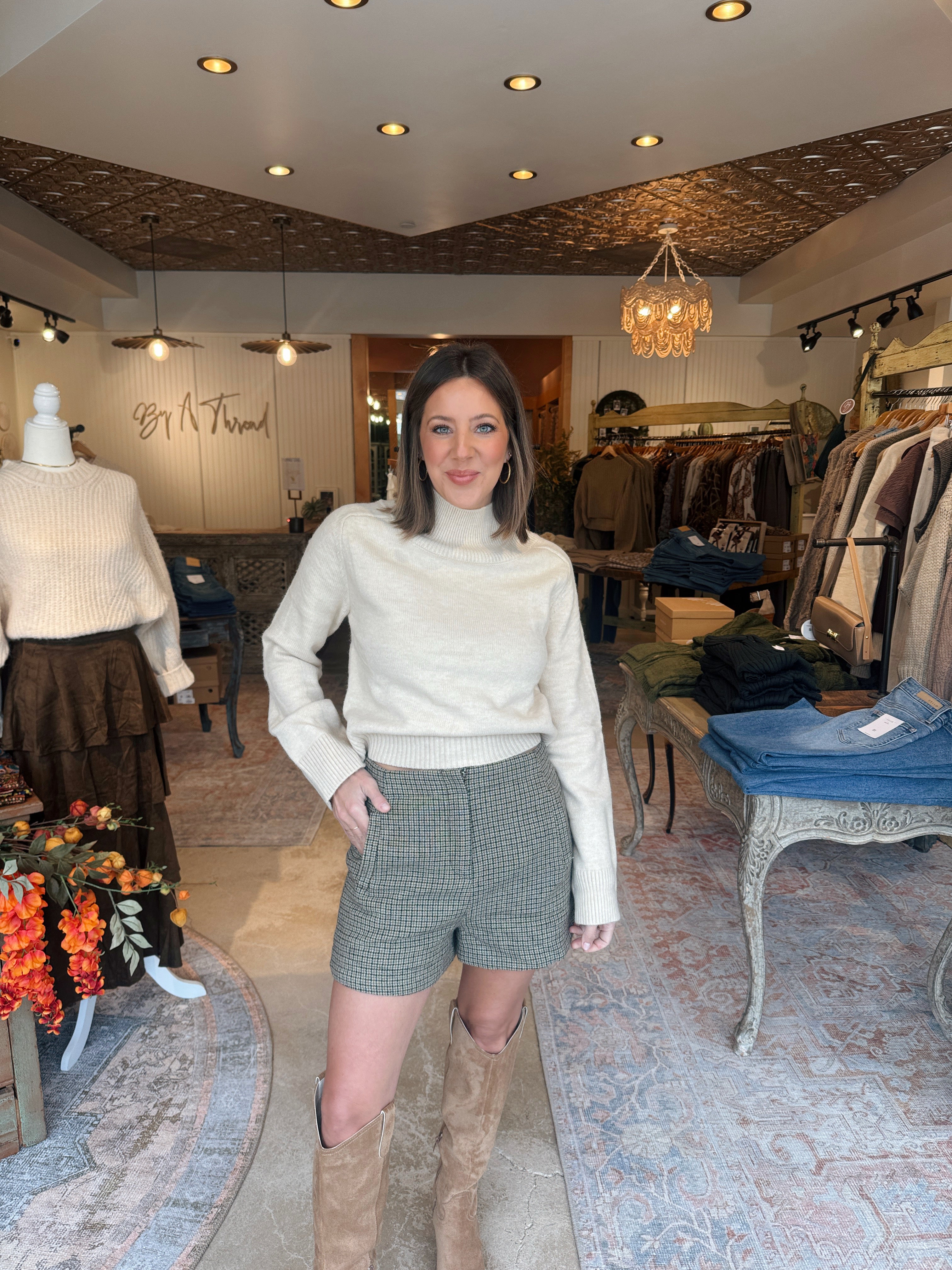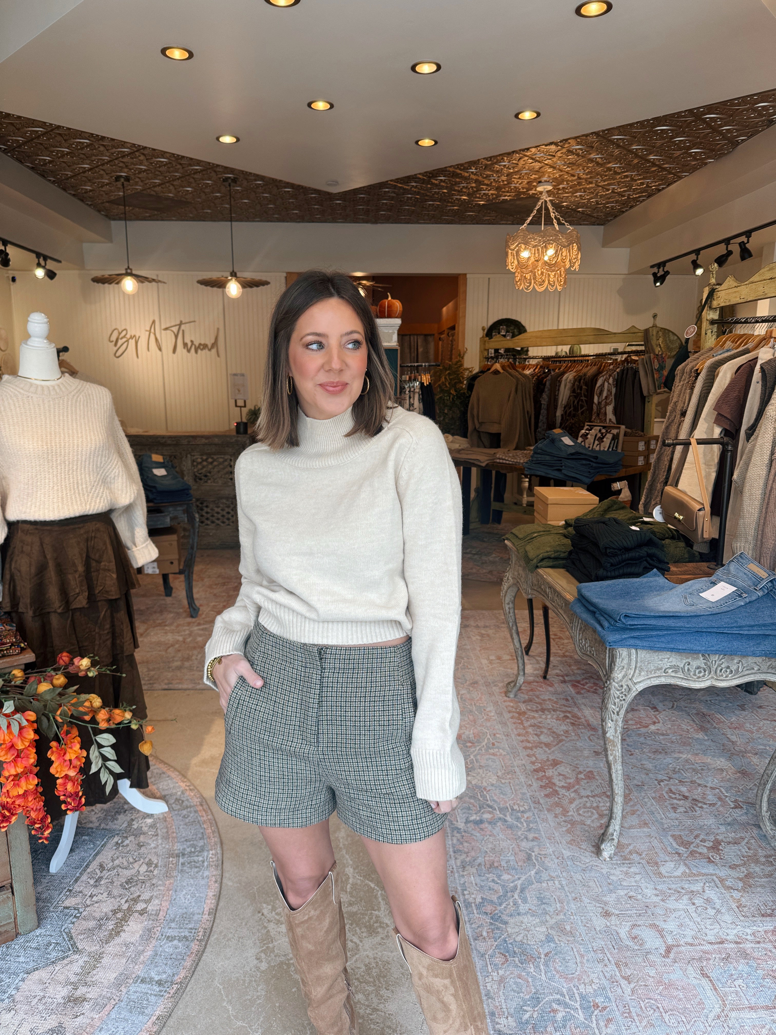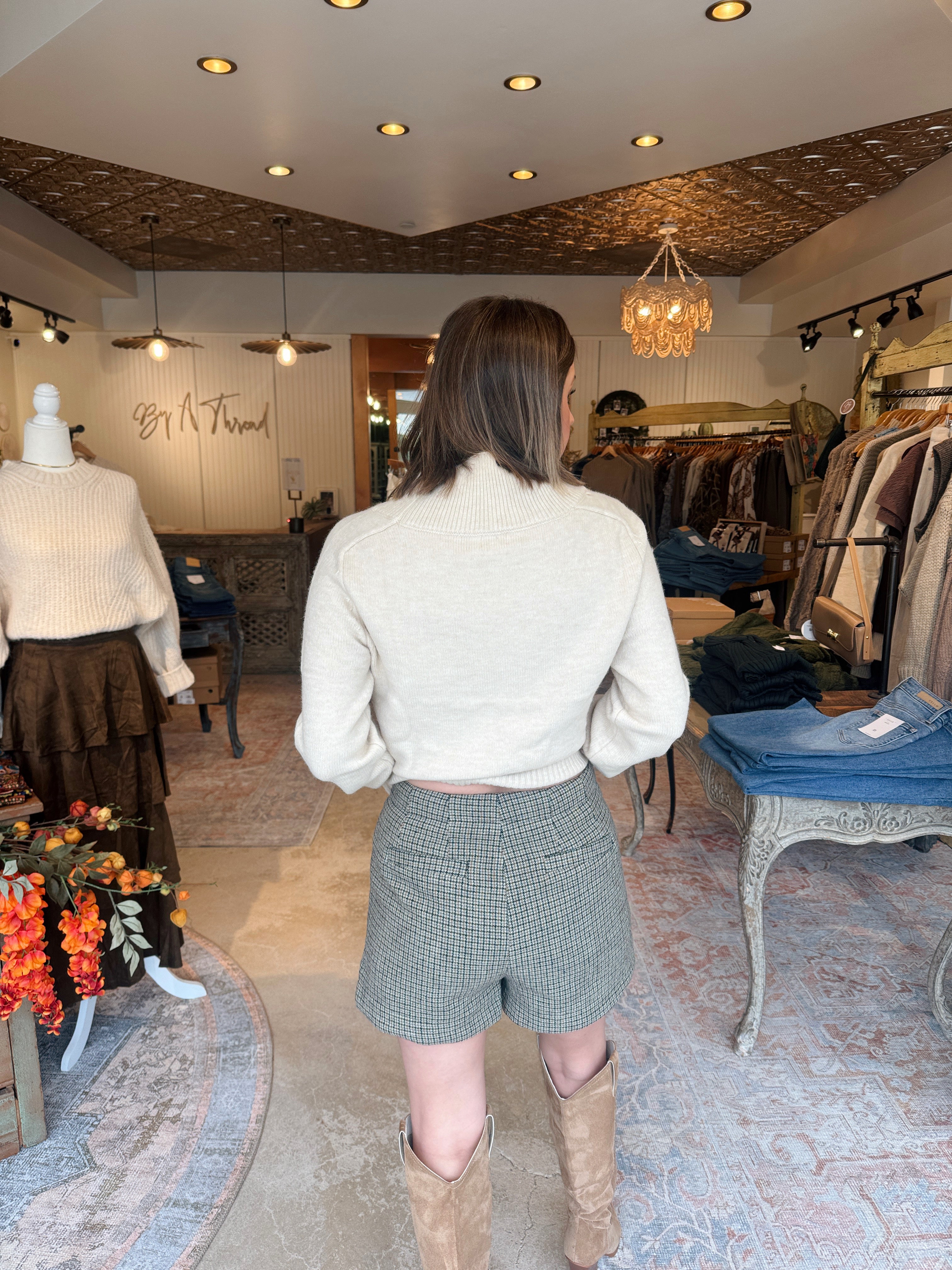 A sophisticated staple, these structured tweed shorts offer tailored elegance with a modern edge. The textured black, taupe, and blue tweed fabric gives them a rich, luxurious look perfect for dressing up or down. Featuring a flattering high rise waist, they are secured with a concealed zip closure and designed with practical side and back slit pockets to maintain a clean, polished silhouette.
