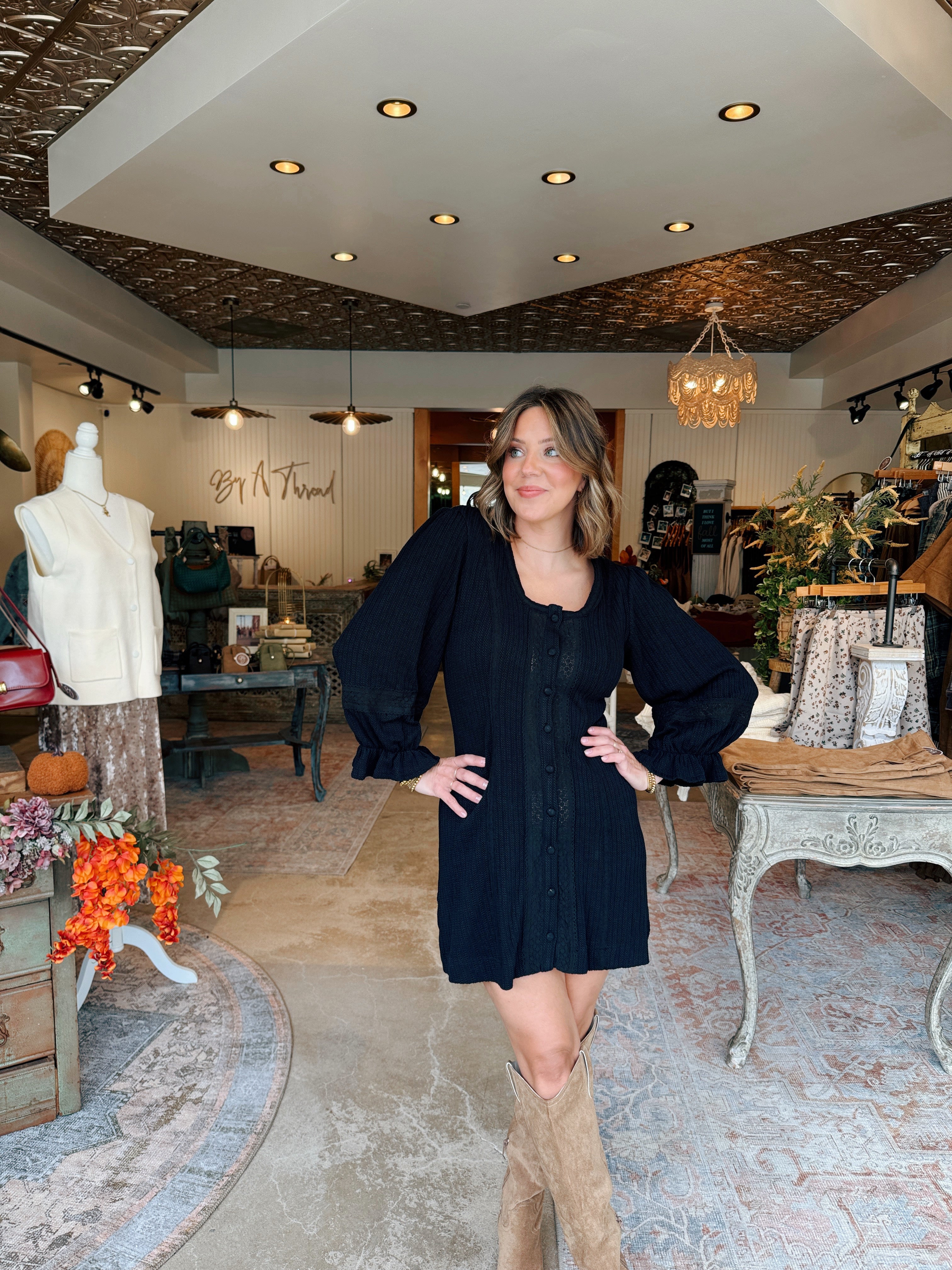 Embrace a sweet and sophisticated style with our Lace Trim Button Down Mini Dress. Crafted from a soft, sweater knit fabric, this dress offers the perfect blend of cozy comfort and delicate charm. Detailed with a full button-down front, a classic V-neck, and dainty lace trim along the cuffs and hem, every detail is designed for a romantic feel. The playful ruffle sleeves add a touch of whimsy, making it perfect for a brunch date, a casual outing, or a charming evening in.