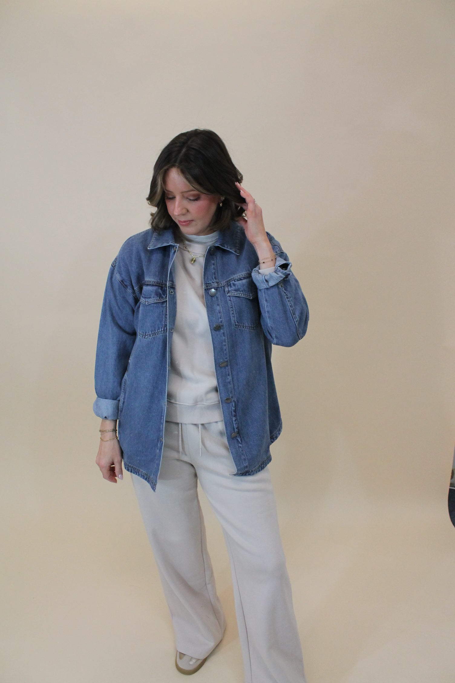 The oversized, boxy silhouette with drop shoulders creates an effortlessly cool, laid-back vibe. Below-the-hip length with side slits provides the perfect amount of coverage and movement—whether you're layering over a tee or your favorite sweater.