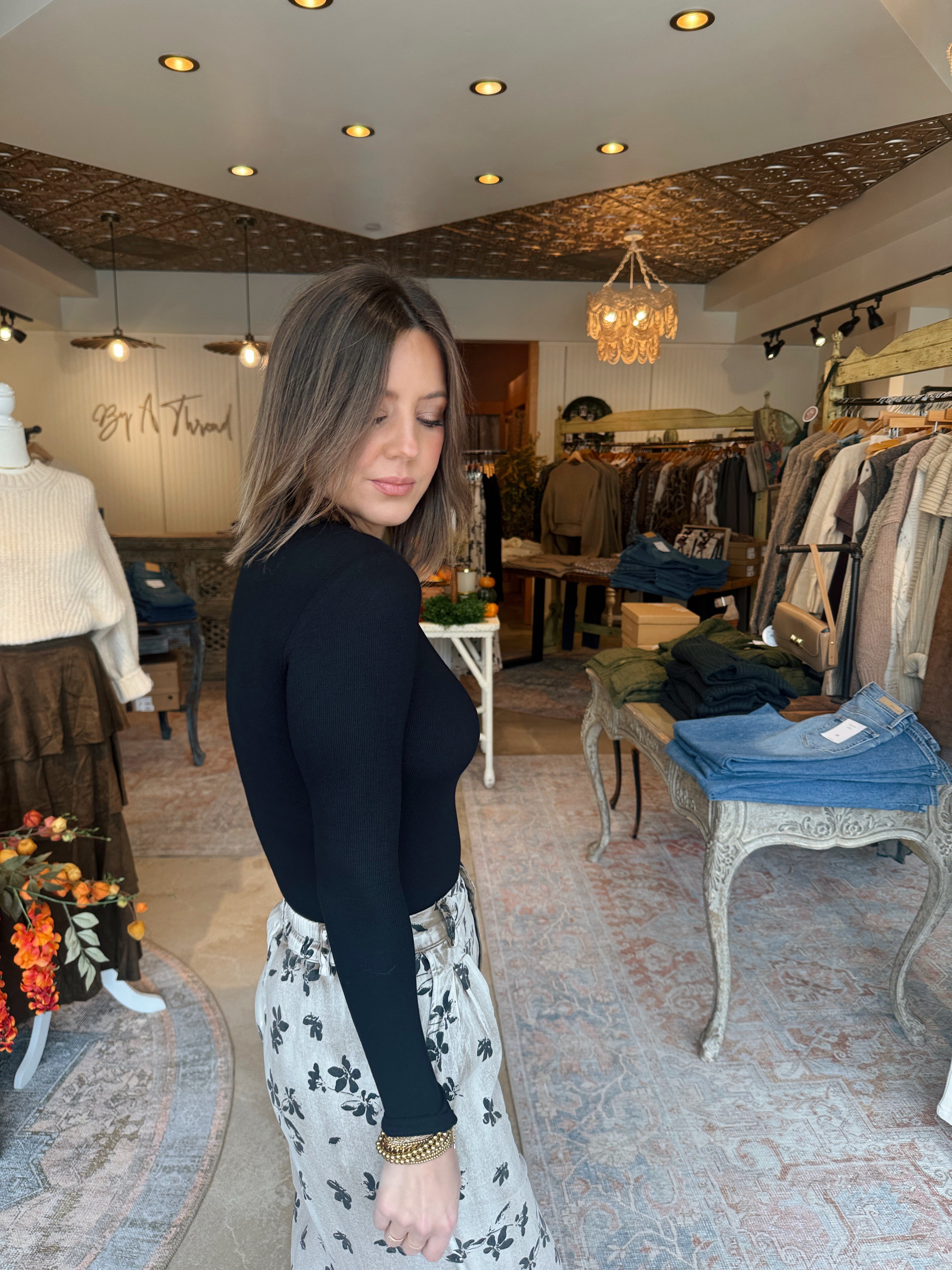 A foundational piece for any modern wardrobe, this sleek long sleeve mock neck bodysuit offers a polished and seamless base layer. The elegant mock neck provides sophisticated coverage, while the fitted silhouette ensures a smooth, tucked-in look that will not bunch or crease. Crafted from a comfortable, stretch fabric, it’s an essential item for effortless styling and layering under high-waisted bottoms.