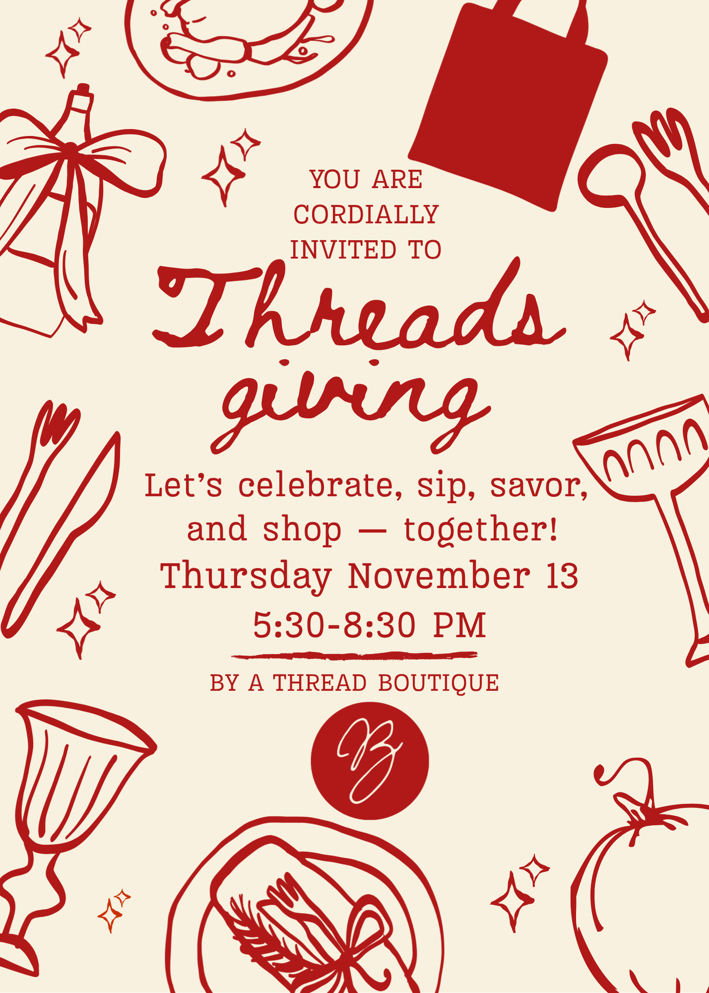 ✨ Threadsgiving is your chance to sip, shop, sparkle, and score—an elevated girls’ night out that feels like more than just shopping, but an experience you’ll talk about all season.