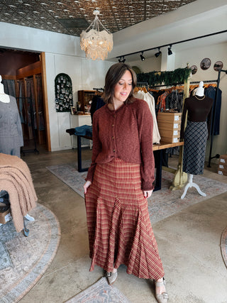 Step into cozy fall style with our curated skirt collection, featuring fall-ready floral maxi skirts, linen midi skirts, and timeless houndstooth skirts.