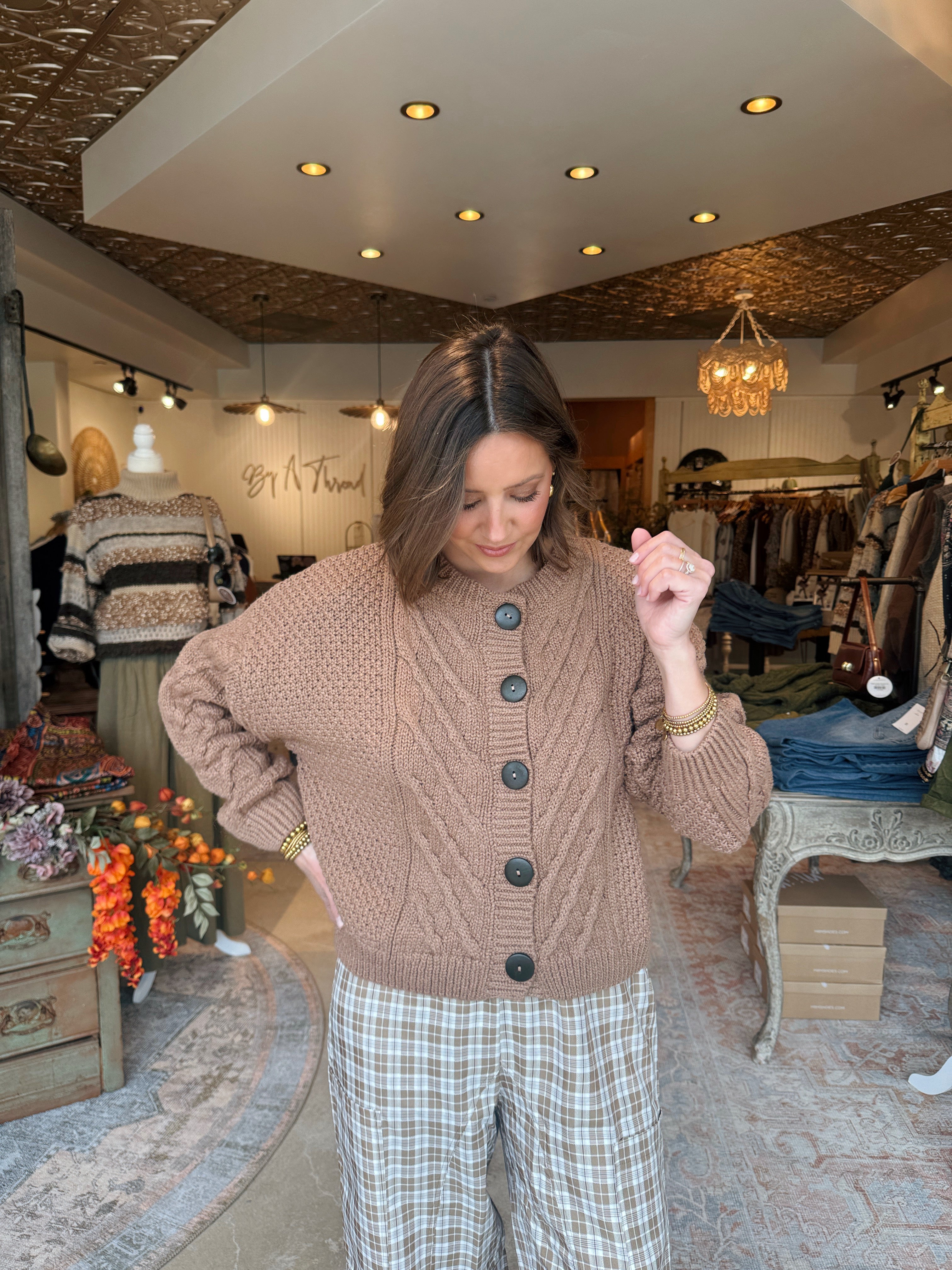 The classic cable sweater is reinvented with functional detail and rich texture. This button-front cable sweater is the perfect cozy knit for adding timeless charm and versatile warmth to your seasonal wardrobe.