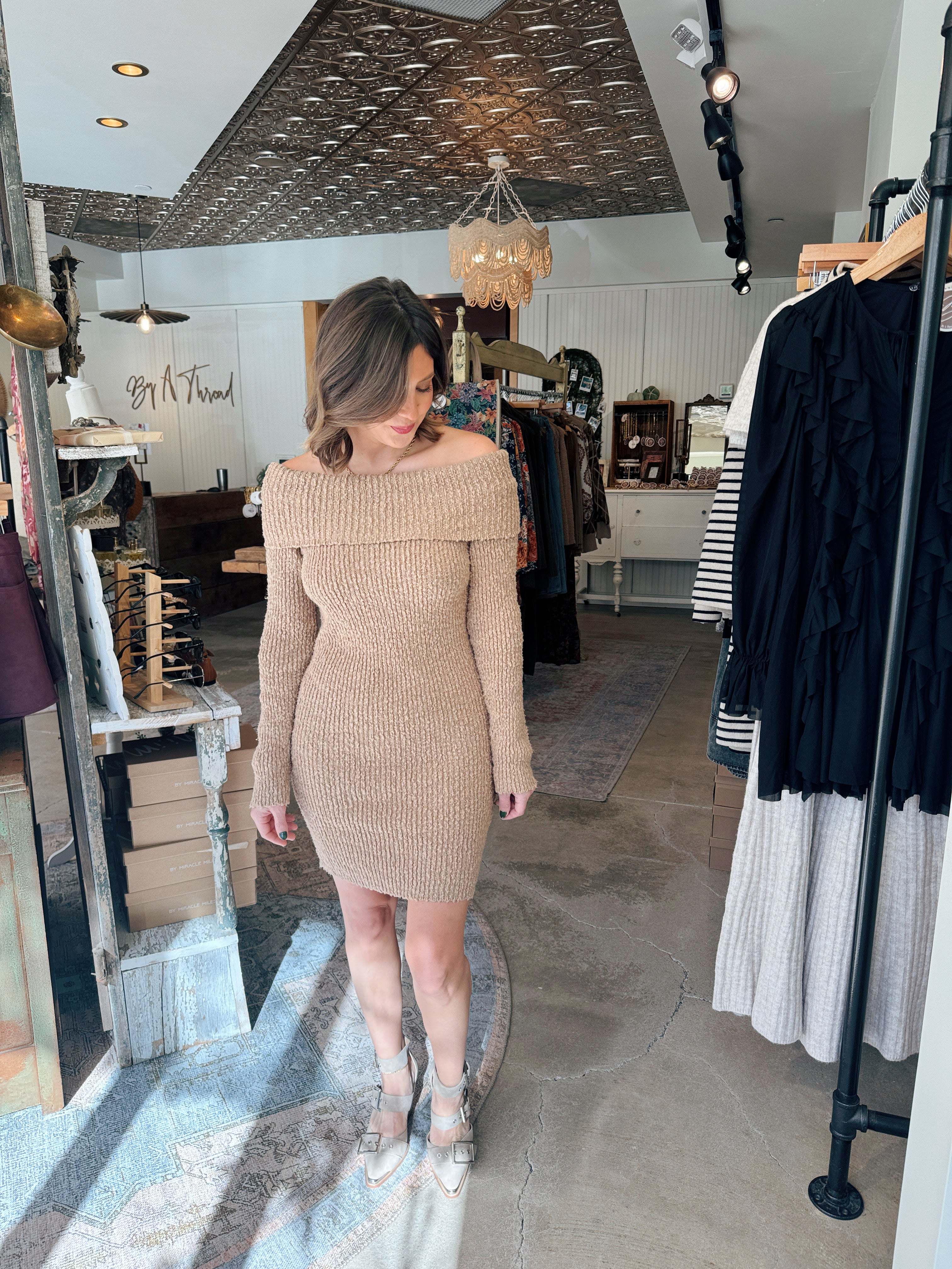 Khalia Off the Shoulder Sweater Dress – By A Thread Boutique