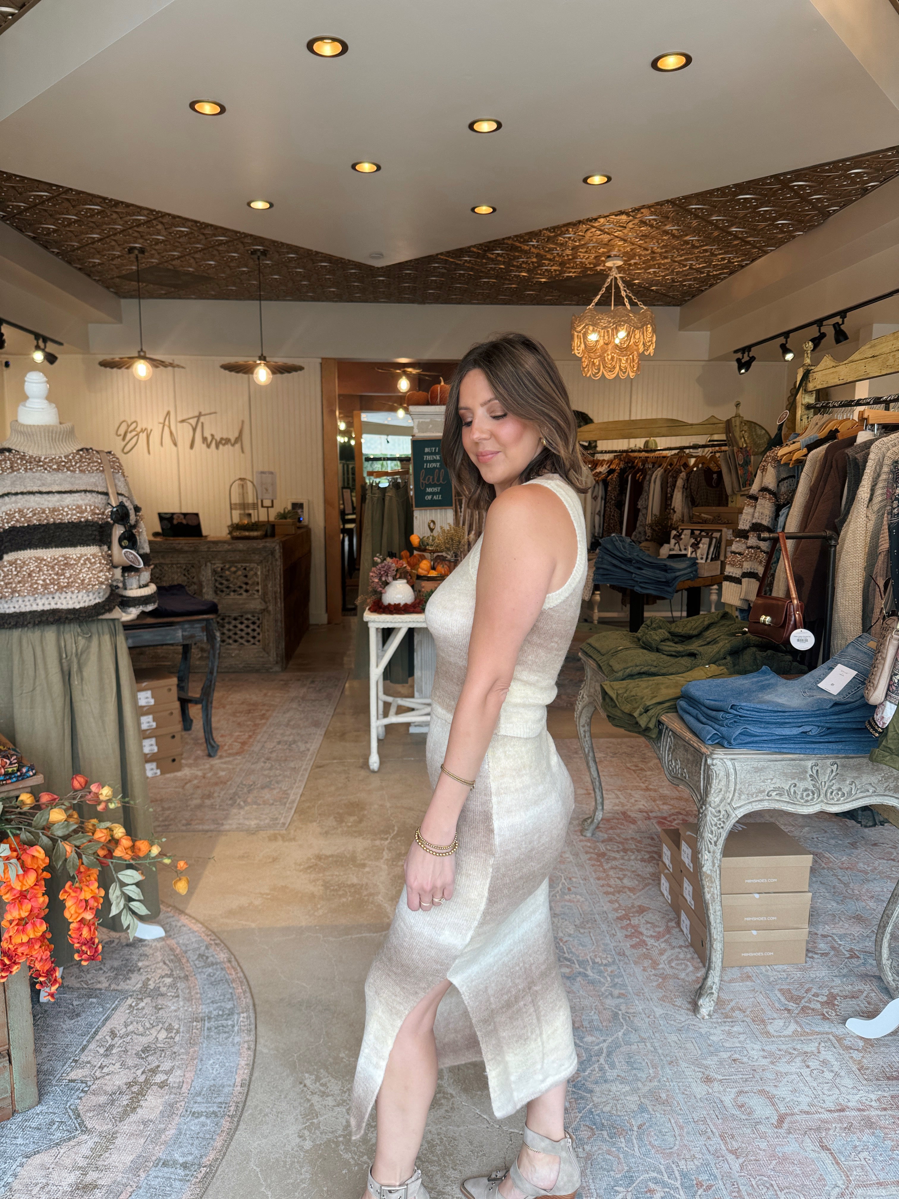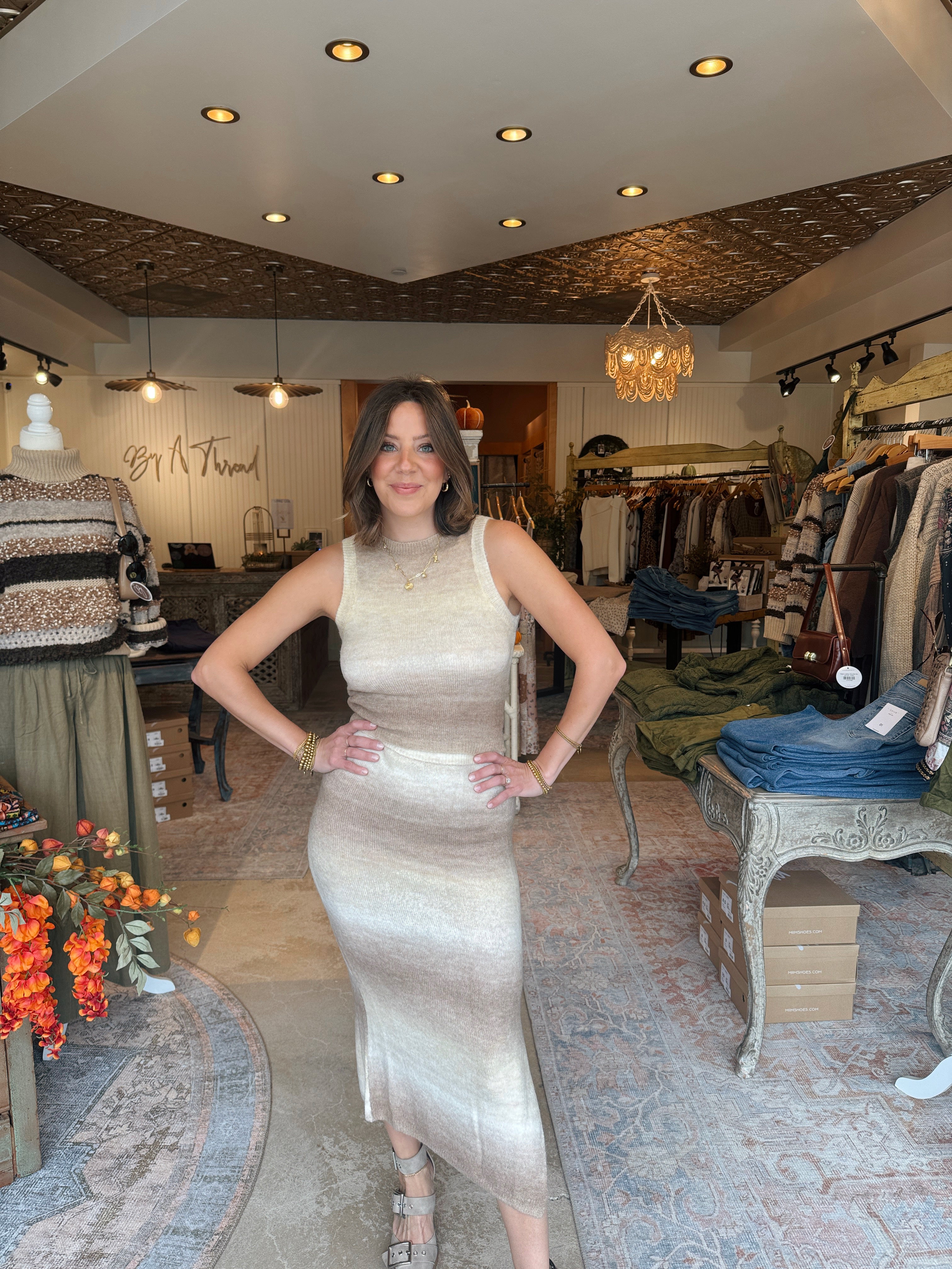 The Palmer ombré sweater skirt brings cozy texture and refined flair to your wardrobe. Designed in a body-skimming midi length, it features a soft ombré gradient that creates a long, lean silhouette. The elastic waistband ensures all-day comfort, while the stylish side slit adds a hint of movement and contemporary edge.