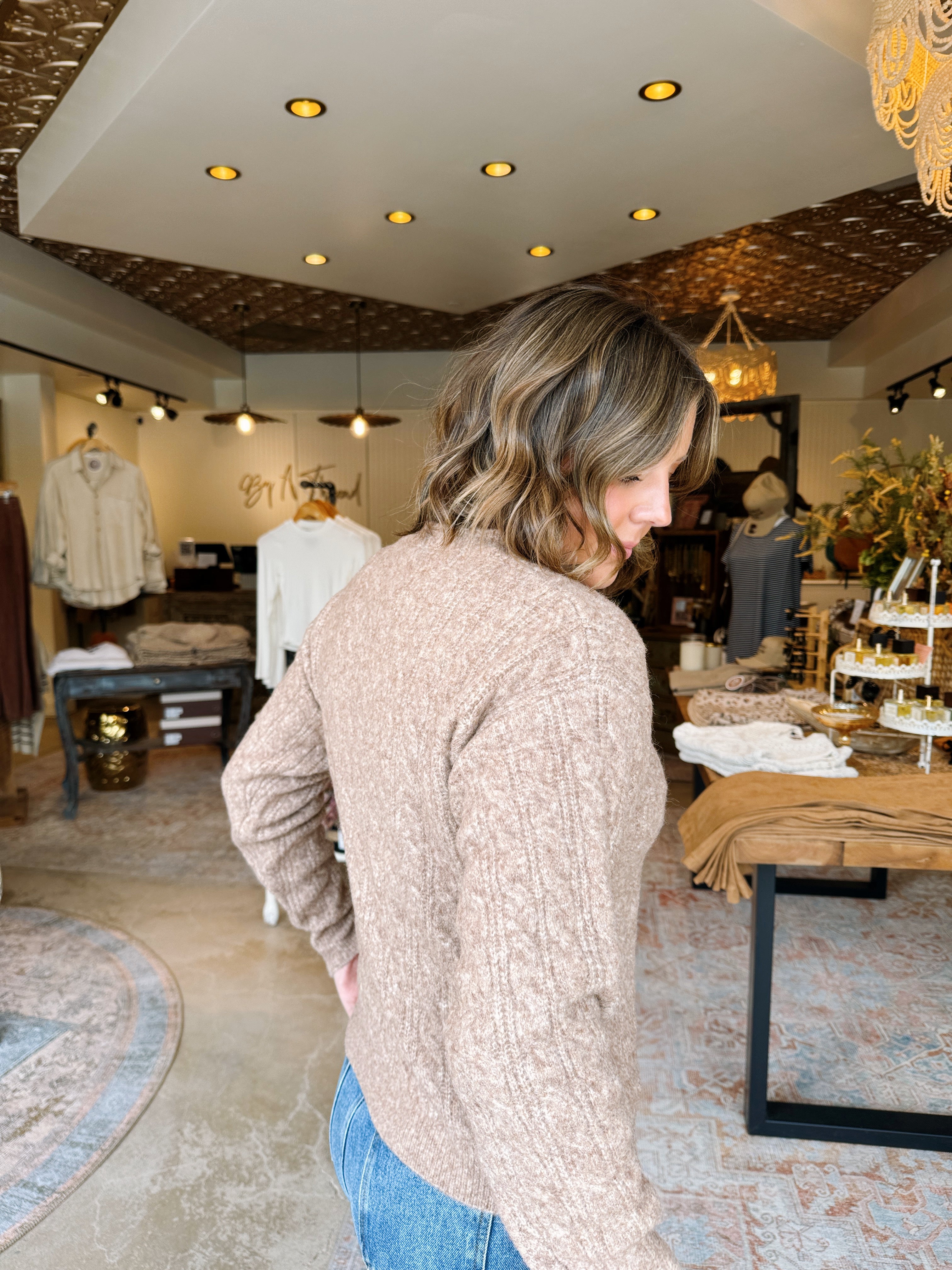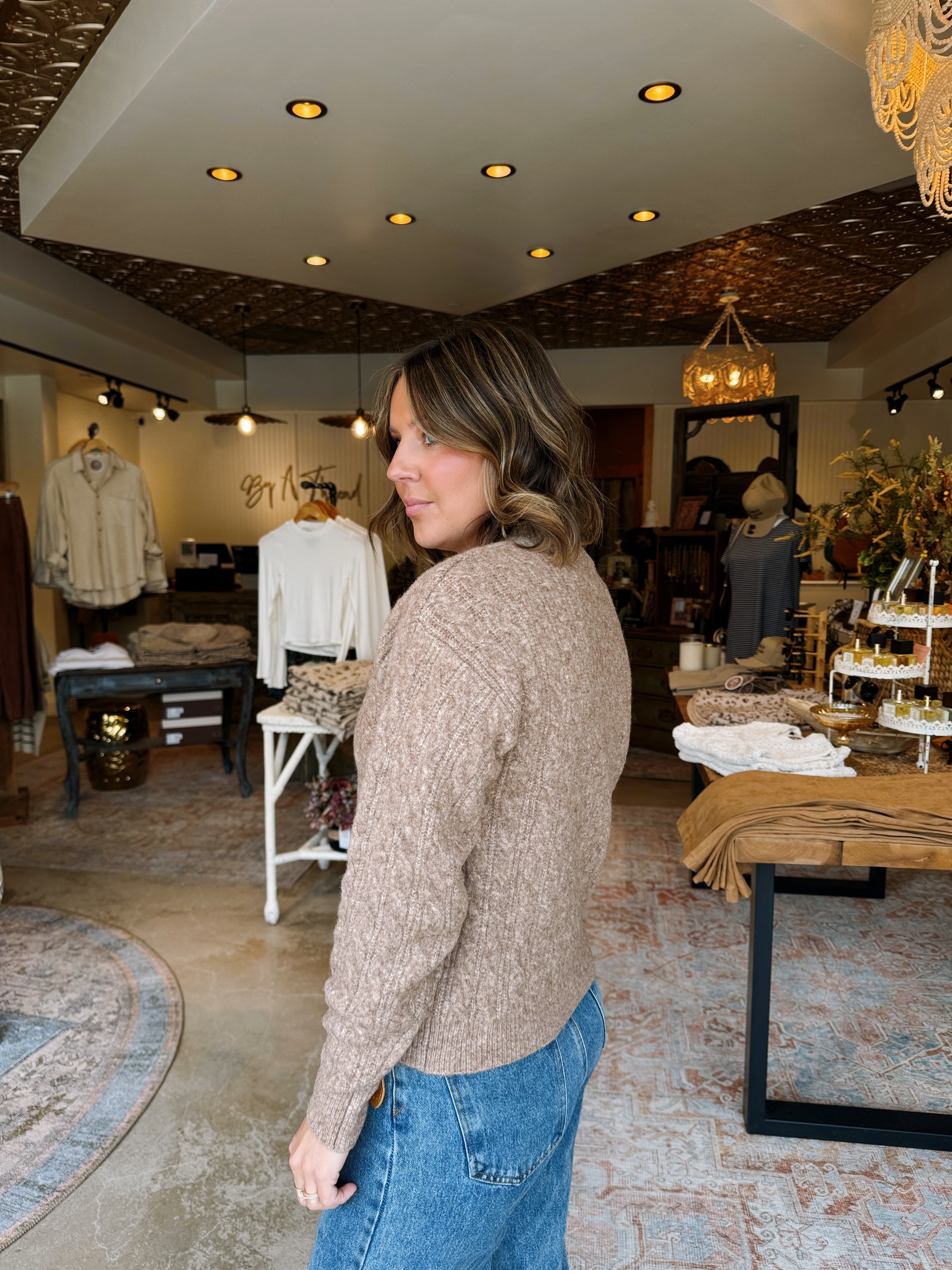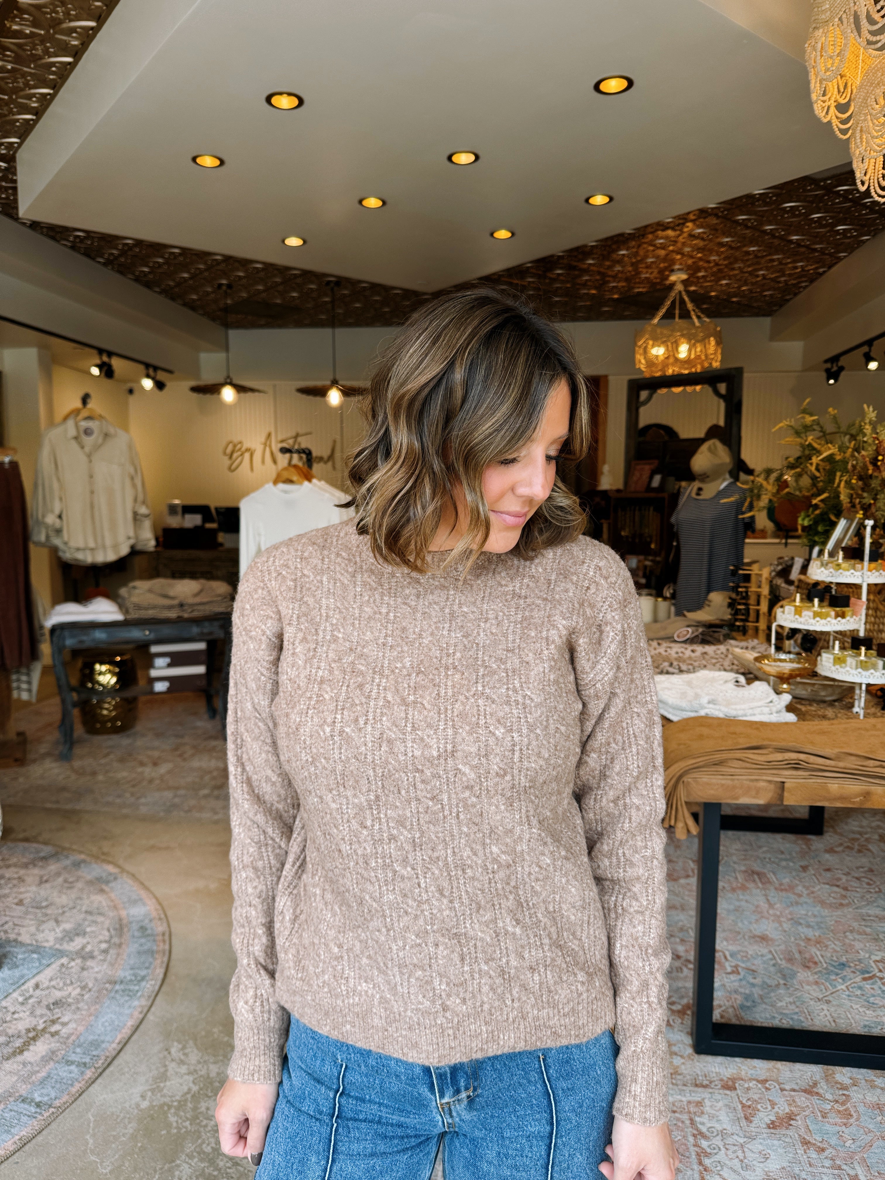 Meet the Maxine, a timeless sweater with a classic cable knit pattern. This long-sleeved pullover features a crew neckline and a basic, comfortable fit, making it a sophisticated staple for your wardrobe. It's a versatile piece you can dress up or down with ease.